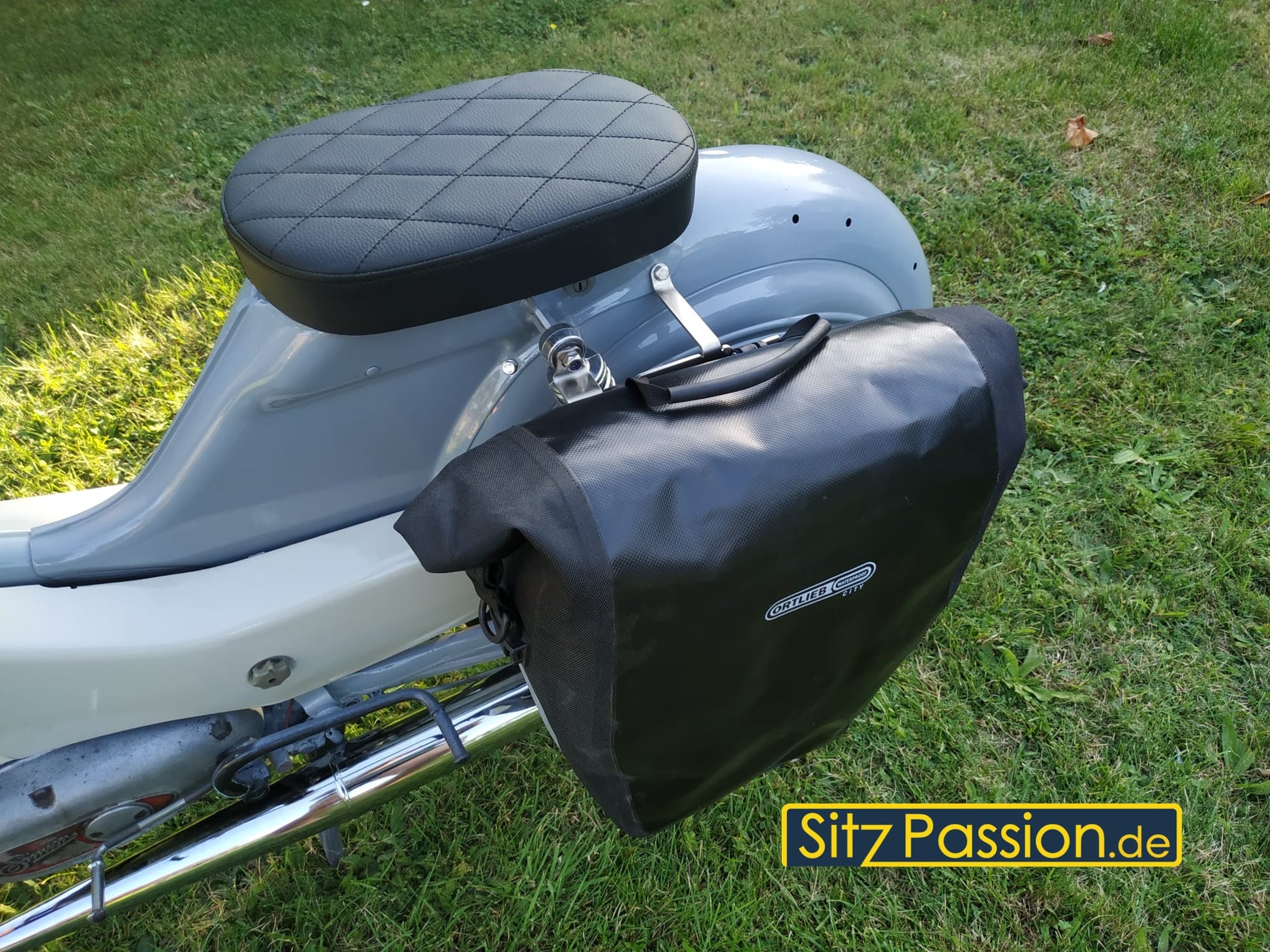 Der speziell entwickelte Doppelseitengepäckträger für den Simson Spatz ermöglicht die sichere Befestigung handelsüblicher Fahrradtaschen (z.B. Vaude, Ortlieb) mit vorhandenen Halterungssystemen. Der Seitengepäckträger besteht aus einem stabilen Grundkörper mit zwei oberen Aufnahmepunkten zur Befestigung am Rahmen bzw. am Schutzblech sowie einer zusätzlichen seitlichen Befestigungsstrebe.